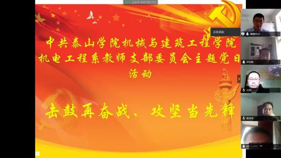 为深入学习贯彻习近平总书记关于统筹推进疫情防控和经济社会发展工作的重要指示精神,巩固拓展“不忘初心、牢记使命”主题教育成果,4月13日,机械与建筑学院机电工程系教师党支部通过“腾讯会议”视频会议形式组织全体党员开展“击鼓再奋战、攻坚当先锋”主题党日活动。