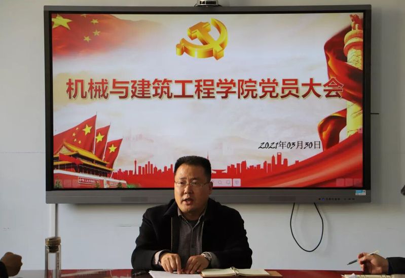 3月30日,机械与建筑工程学院在职训楼A2003会议室召开党员大会,部署落实学院2021年度党建重点工作。学院全体领导班子、全体教师党员和学生党员代表参加了会议。会议由党总支书记刘献华同志主持。