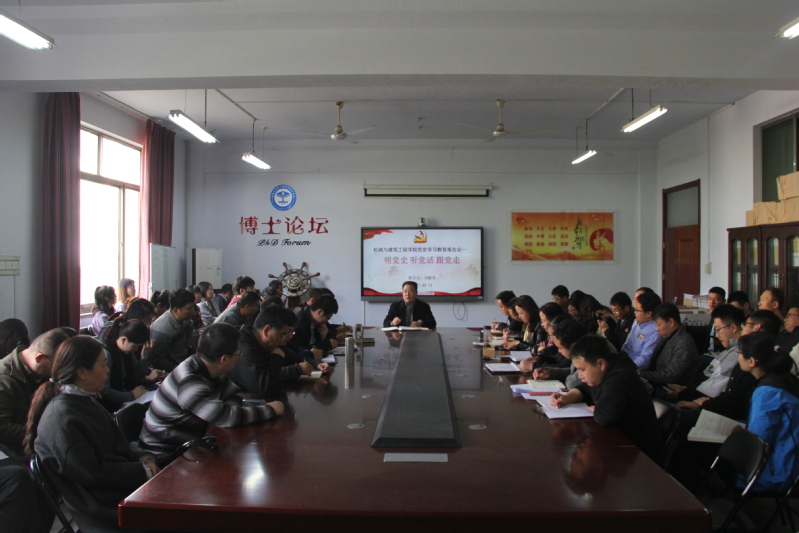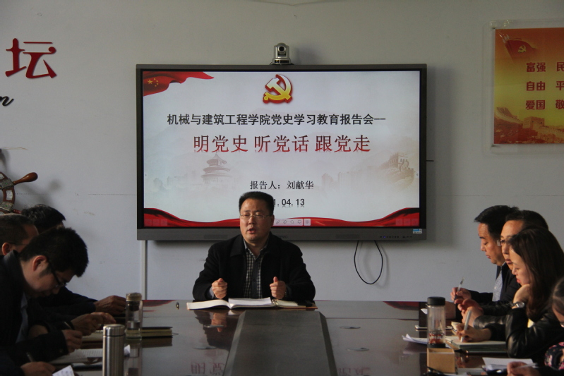 4月13日下午,机械与建筑工程学院在职训楼会议室召开党史学习教育动员部署会暨“明党史、听党话、跟党走”报告会。学院全体教师及学生党员代表参加会议。会议由学院党总支副书记龚明玉同志主持。